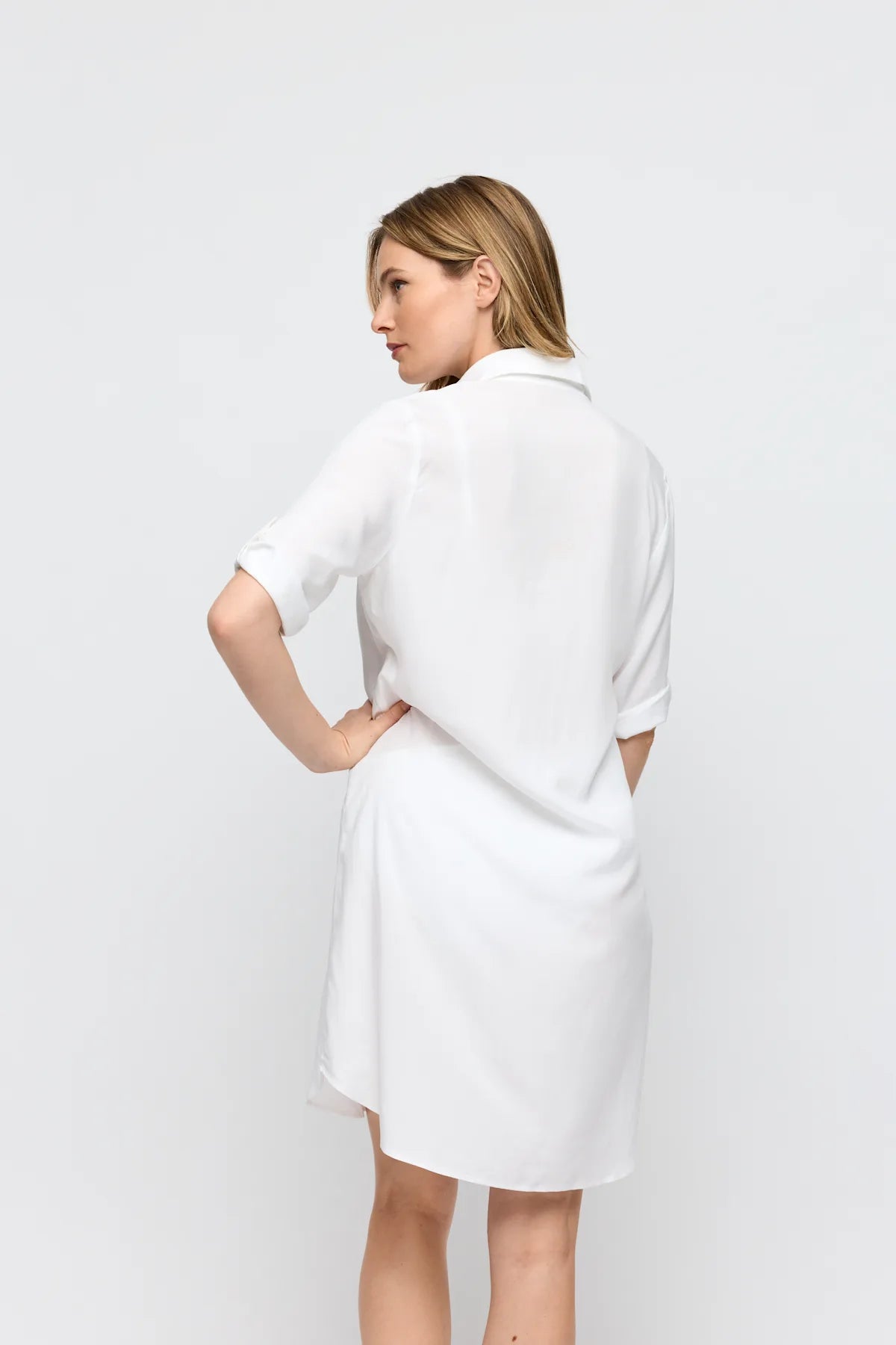 I Elfin White får den ett fräscht och sofistikerat uttryck som framhäver solkysst hud, medan den kortare längden och den stilrena designen gör den enkel att styla.