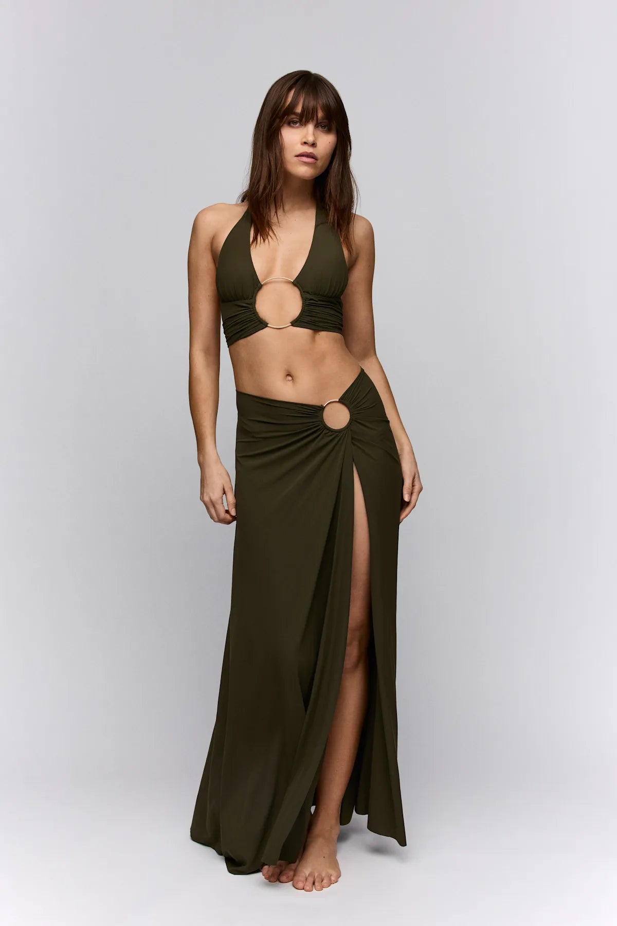 Den här bikinitoppen har en trendig triangel-design som ger en sexig, lyxig och modern look. Den olivgröna färgen är riktigt trendig och passar perfekt för både soliga dagar vid stranden och heta poolfester. Toppen ger en smickrande passform och kombinerar både komfort och sexighet, vilket gör den till ett måste i garderoben för den som vill ha en mångsidig och stilfull badklädesgarderob.