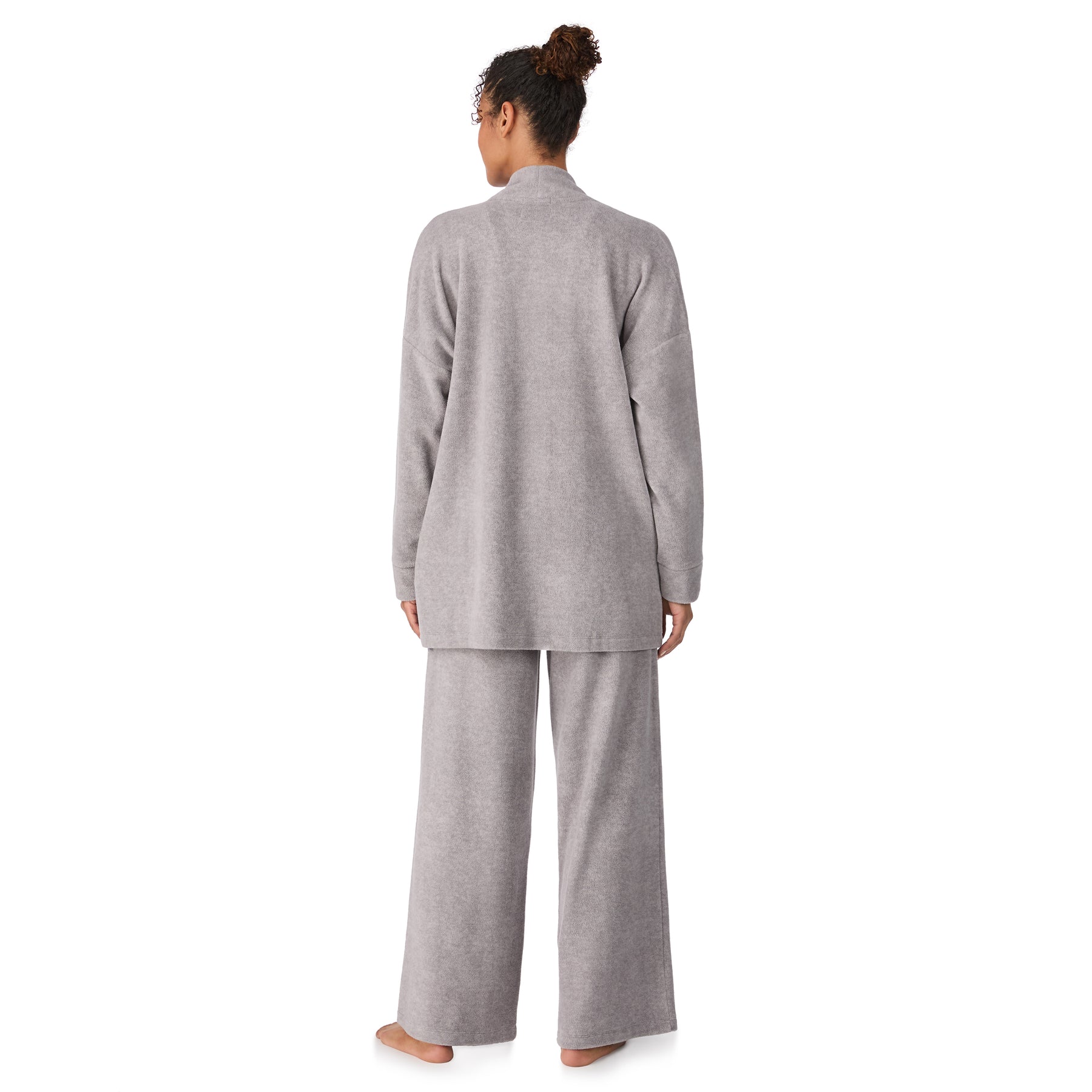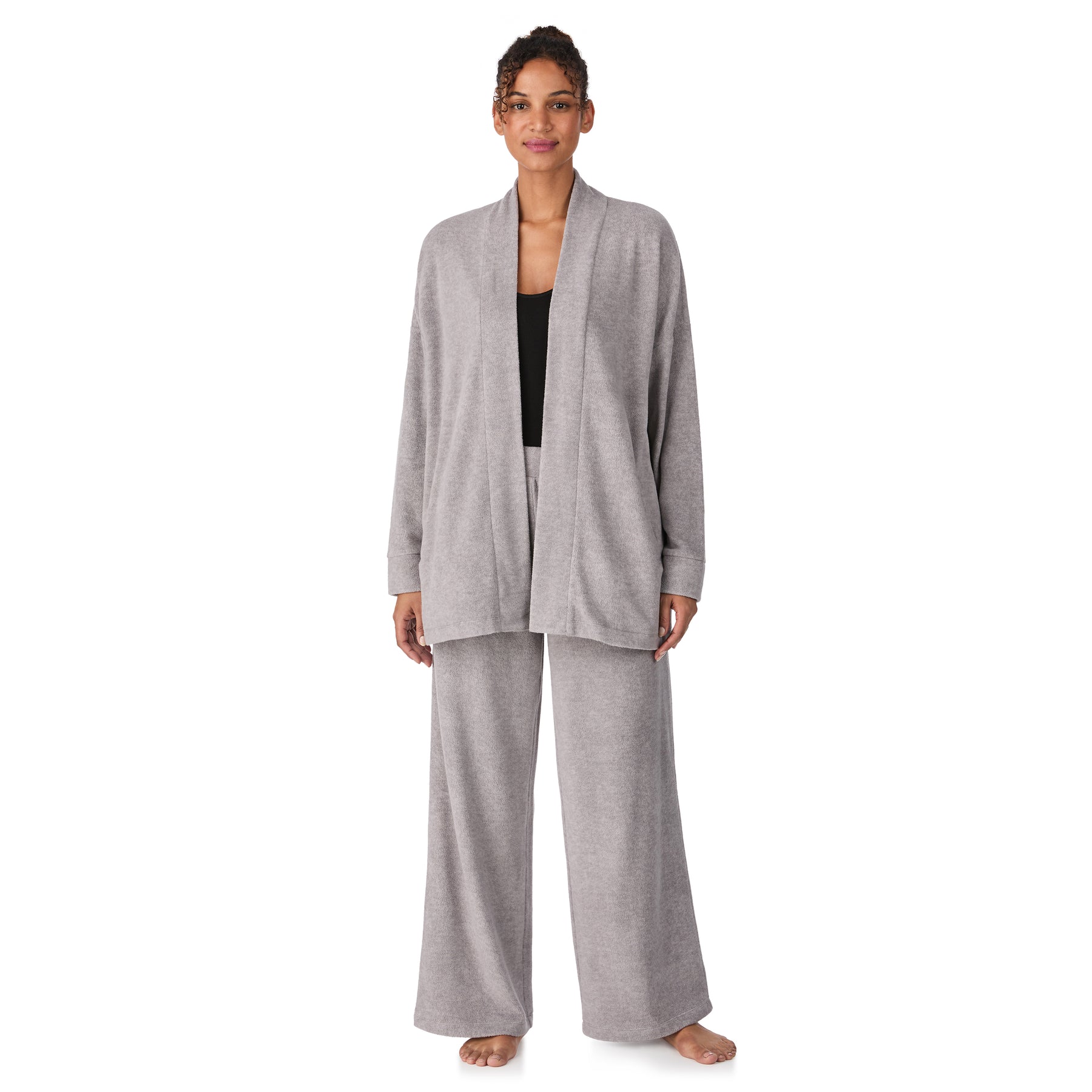 Unna dig ultimat hemmakomfort med DKNY Let’s Get Cozy – ett mjukt set som är lika snyggt som avslappnat. Den långärmade överdelen har en lös, öppen passform med lätt fall och raka linjer som gör den enkel att bära både över ett linne eller direkt mot huden. Byxorna har en ledig siluett med breda ben och elastisk midja som gör dem sköna att röra sig i, oavsett om du kopplar av hemma eller startar dagen långsamt.
