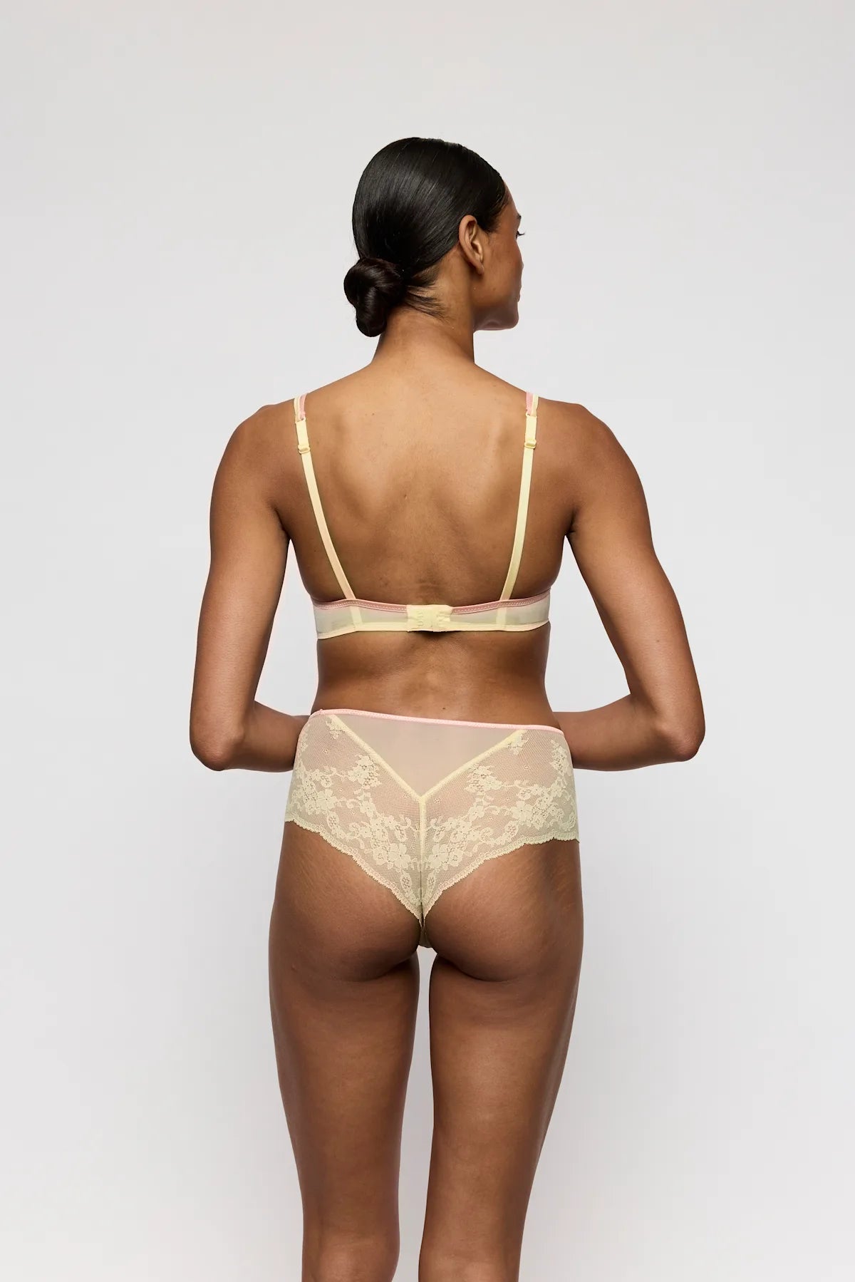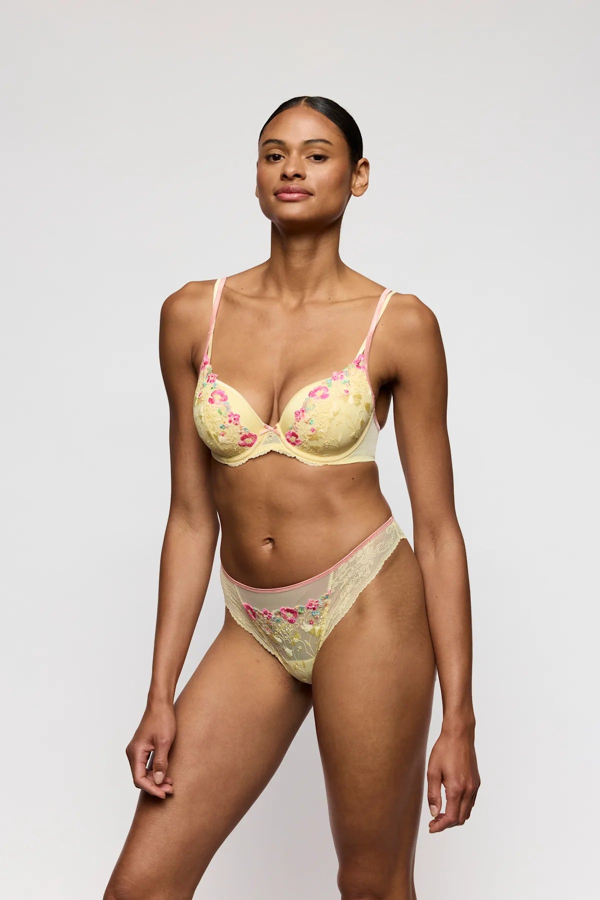 Padded Bra Heartshape från Marie Jo's serie Lizelot. En vadderad bh i Marie Jo's klassiska och otroligt bra heartshape-form som ger en hjärtformad urringning. Den gula pastelltonen med delikata blommiga broderier ger en fräsch, somrig känsla med en touch av romantik. En bh som kombinerar komfort, stöd och feminin charm på allra bästa sätt.