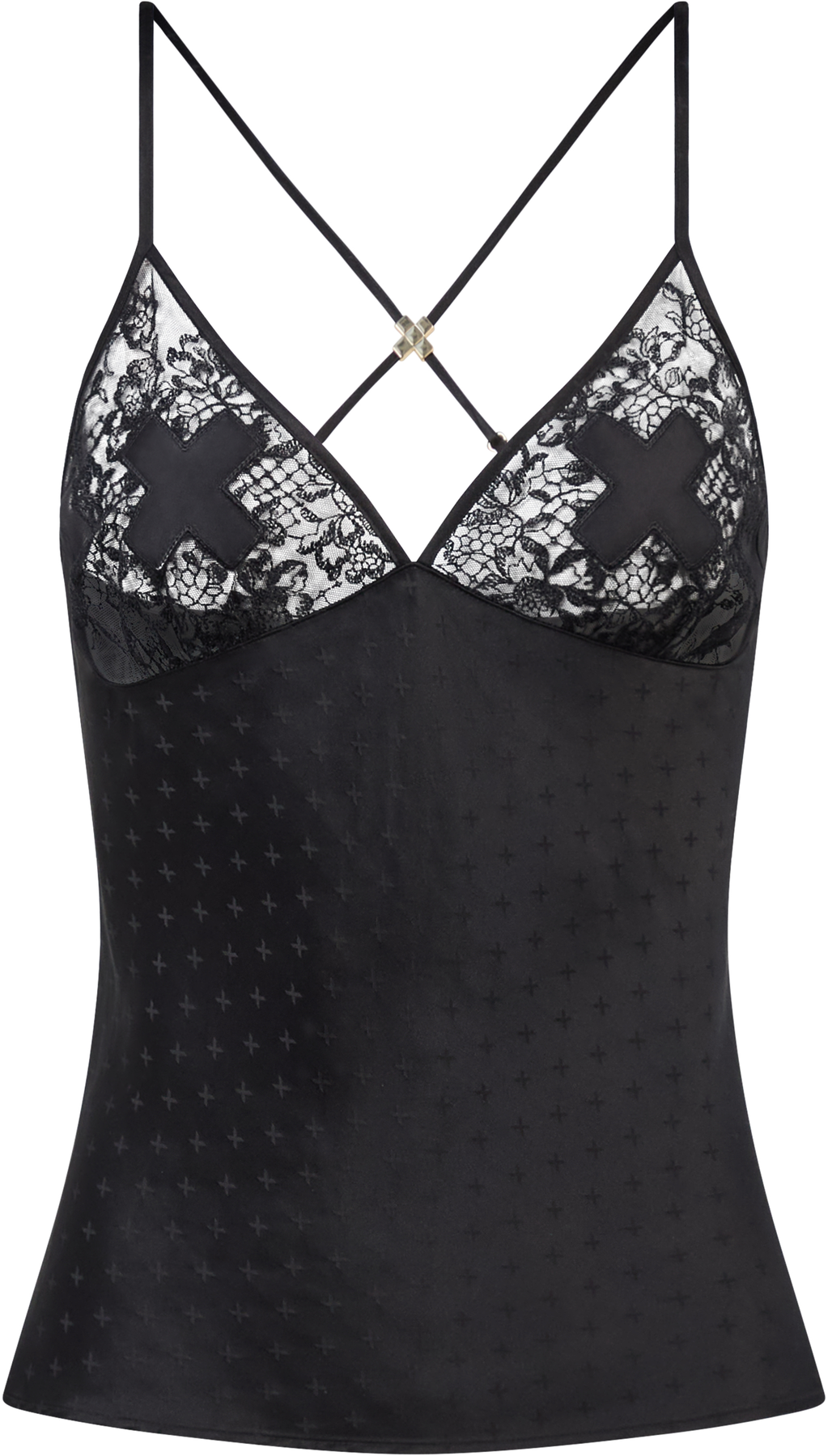 Xplicit låter den ikoniska Satin X-detaljen ta huvudrollen i denna förförande tolkning av varumärkets signaturstil. Det lyxiga silkeslinnet har en smickrande åtsittande passform och en v-ringning kantad av transparent, blommig spets som förstärker den sensuella känslan. Den karaktäristiska Satin X-markeringen vid bysten och jacquardmönstret med X-monogram ger linnet en exklusiv, igenkännbar finish. De korsade, justerbara axelbanden bak formar en elegant X-siluett, medan diskreta sidslitsar skapar ett följsamt och mjukt fall.