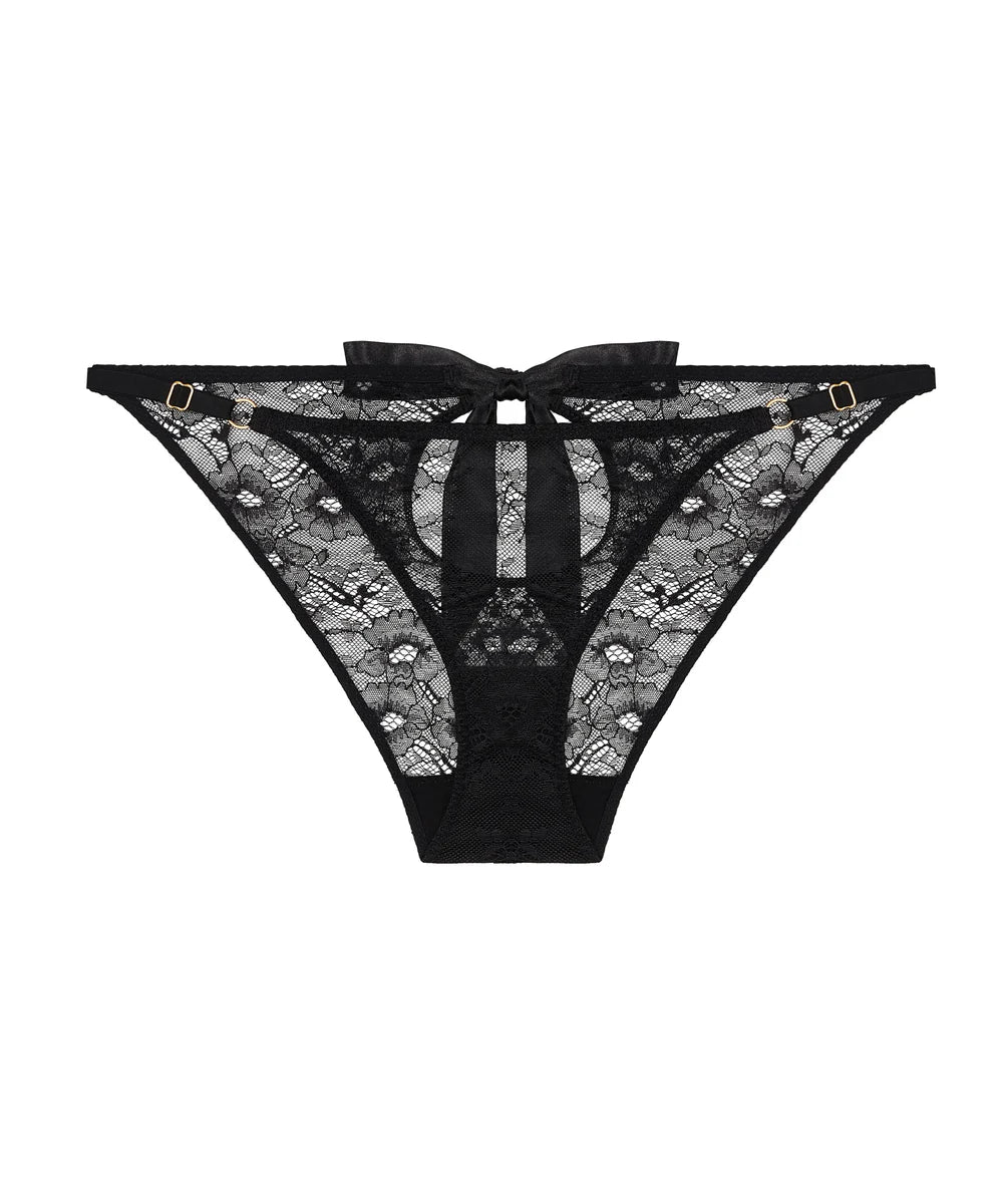 En förförisk trosa i elegant spets från Aubades Boîtes à Désir-kollektion. Den låga modellen framhäver silhuetten och de fina detaljerna ger ett sensuellt men sofistikerat uttryck. En dekorativ öppning baktill med en satinrosett sätter pricken över i:et.